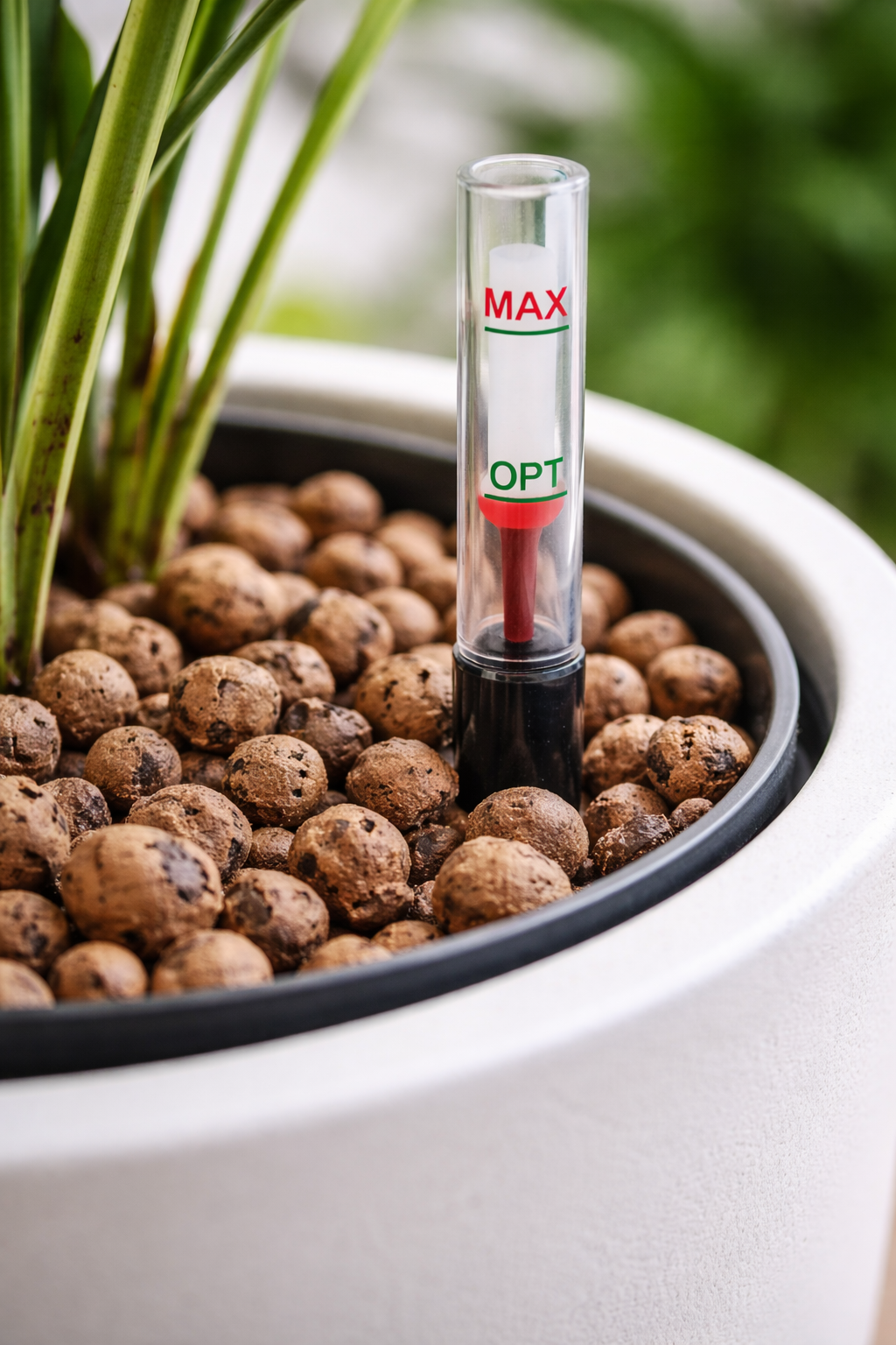 • Hydrokultur-Topfen (Substrat, Wasserstandsanzeiger, Nährstoffkonzept)